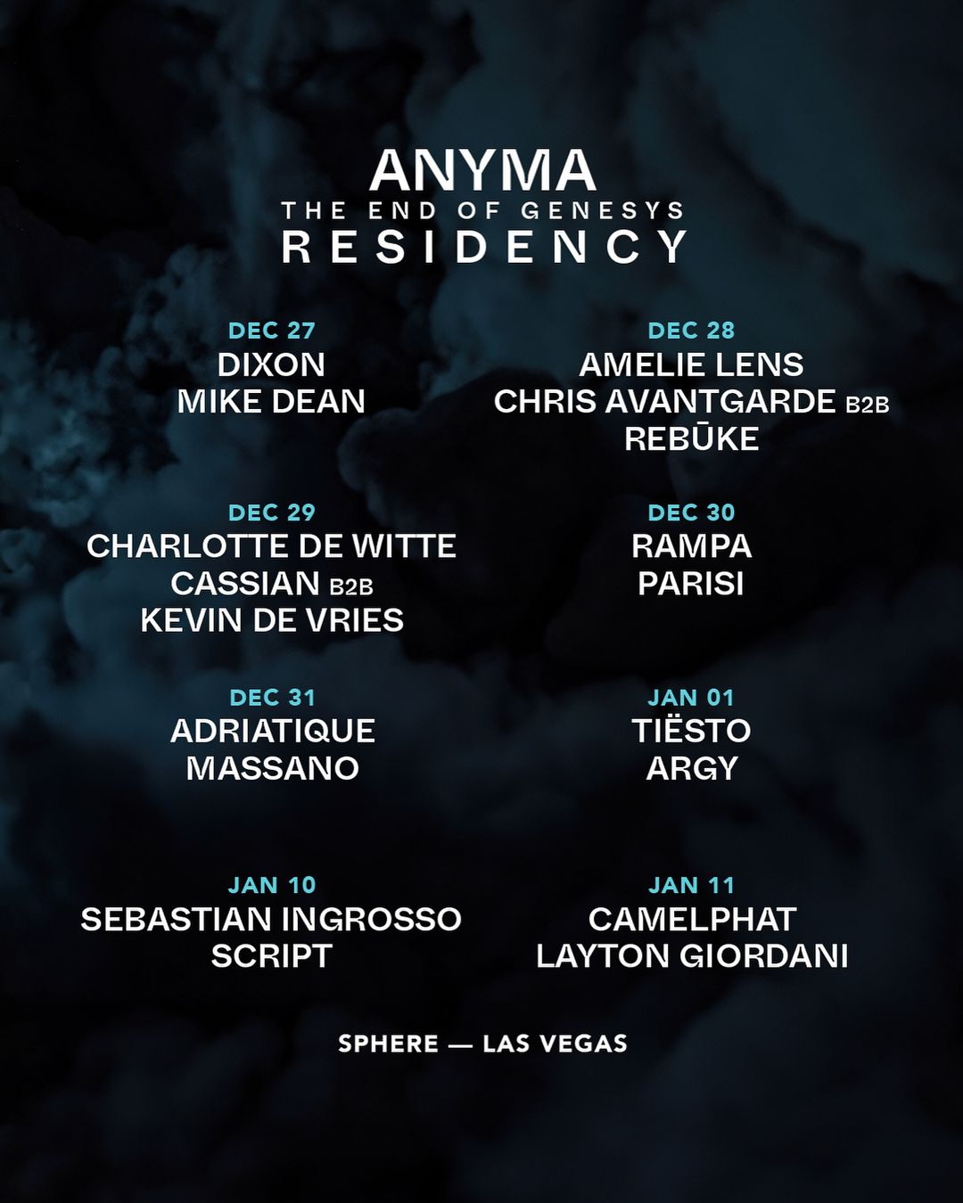 Visual che adesso entreranno per la prima volta al The Sphere di Las Vegas per l’atto finale del progetto Genesys (vi consigliamo di vedere il video promozionale). L’evento che si terrà a fine anno regala ad Anyma anche il primato di primo dj al mondo che si esibierà in questa straordinaria struttura. L’evento, inizialmente ideato per la notte del 31 Dicembre è andato sold out all’istante e subito sono state aggiunte altre date.